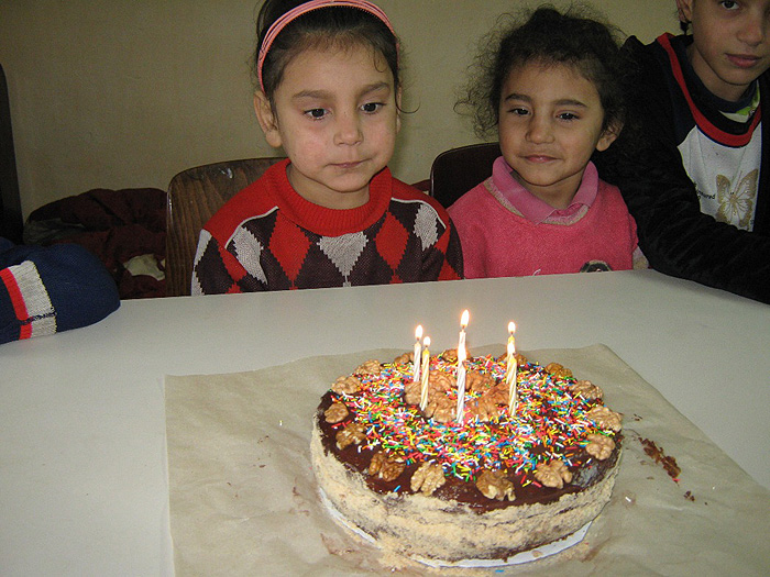 We have very lovely children, with whom work four days a week. The ages for the preschool are from 3 to 7 or 8, but most days the older kids do not go to school and they are longing to learn even the very elementary knowledge that we are teaching to the preschool. As we teach Bible verses and songs to young ones the older ones learn how to read and write the same. When they learn one verse or a song they receive a reward, which usually is food and an item of clothing or shoes or school supplies. And if the child behaves well we celebrate her or his birthday with a delicious homemade cake.