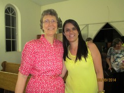 Glenice and Raquel, the Praise Group Leader, after worship in the Pains church