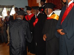 Finally we celebrated with Steve’s students at their graduation at Gidada on Saturday, June 6. Forty-one students graduated from the two-year Advanced Certificate program (taught only in Afaan Oromo). These men and women will now begin working in churches throughout the Synod. After they get married (a requirement here for ordination) and receive a call from a congregation, they will then be ordained by the Synod. Ten of Steve’s students graduated from the Diploma Program. These are ministers and evangelists who have come to Gidada to upgrade their education to better serve their congregations. The students were awarded their degrees by officials from both the Gidada Theological College and Western Wolega Bethel Synod. Steve was accorded the honor of preaching the graduation message. Steve challenged his students to be like the prophetess Deborah, who answered God’s call with complete commitment and served as an example to God’s people. After the ceremony many pictures were taken and a lunch of ukaamsa was served to all the students and their family members who came for this important occasion in their lives.