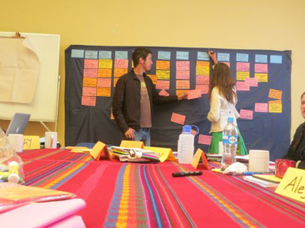 The commitments within UMAVIDA for change and growth are not only found in our youth, though. For two weeks in February UMAVIDA hosted a delegation of seven people from our U.S. partners in San Francisco and Cascades (Oregon). This was a whirlwind, but very beneficial, time for the delegates to rebuild partnerships with UMAVIDA and its organizations, to visit and understand more about the work of UMAVIDA partner organizations, and to see and have a deeper understanding of the Bolivian context. Our time began with the UMAVIDA General Assembly, where the delegation gave presentations about their relationship with UMAVIDA and Joining Hands and met with UMAVIDA delegates and two organizations working on water issues in Cochabamba. Amidst the many travels by plane, bus and taxi, we visited six of the nine UMAVIDA partner organizations. One visit included planning sessions in Oruro (122 miles south of La Paz) with CEPA (Center for Ecology and Andean People) around the development of the campaign concerning the water contamination by the Kori Kollo mine and the government environmental audit, which is due to be published in April. It was a blessing to be seated around one table and to talk about the course of the audit and the work of CEPA to catalyze and monitor it as well as concrete plans for how our U.S. partners can advocate and support them from the States. After this positive encounter we had more energy and encouragement to move on to the greater strategic planning session between networks. After two days of much discussion, debate, confusion, clarification, and modification, we came out with detailed Action Plans for the North, for the South, and for the North and South combined.